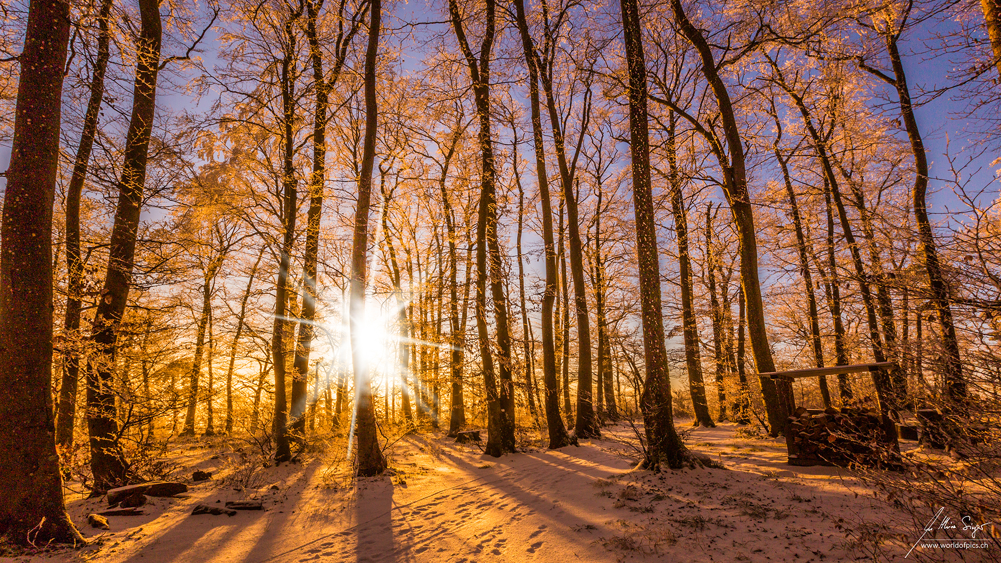Sonnenuntergang im Wald auf dem Bürersteig im aargauischen Fricktal.